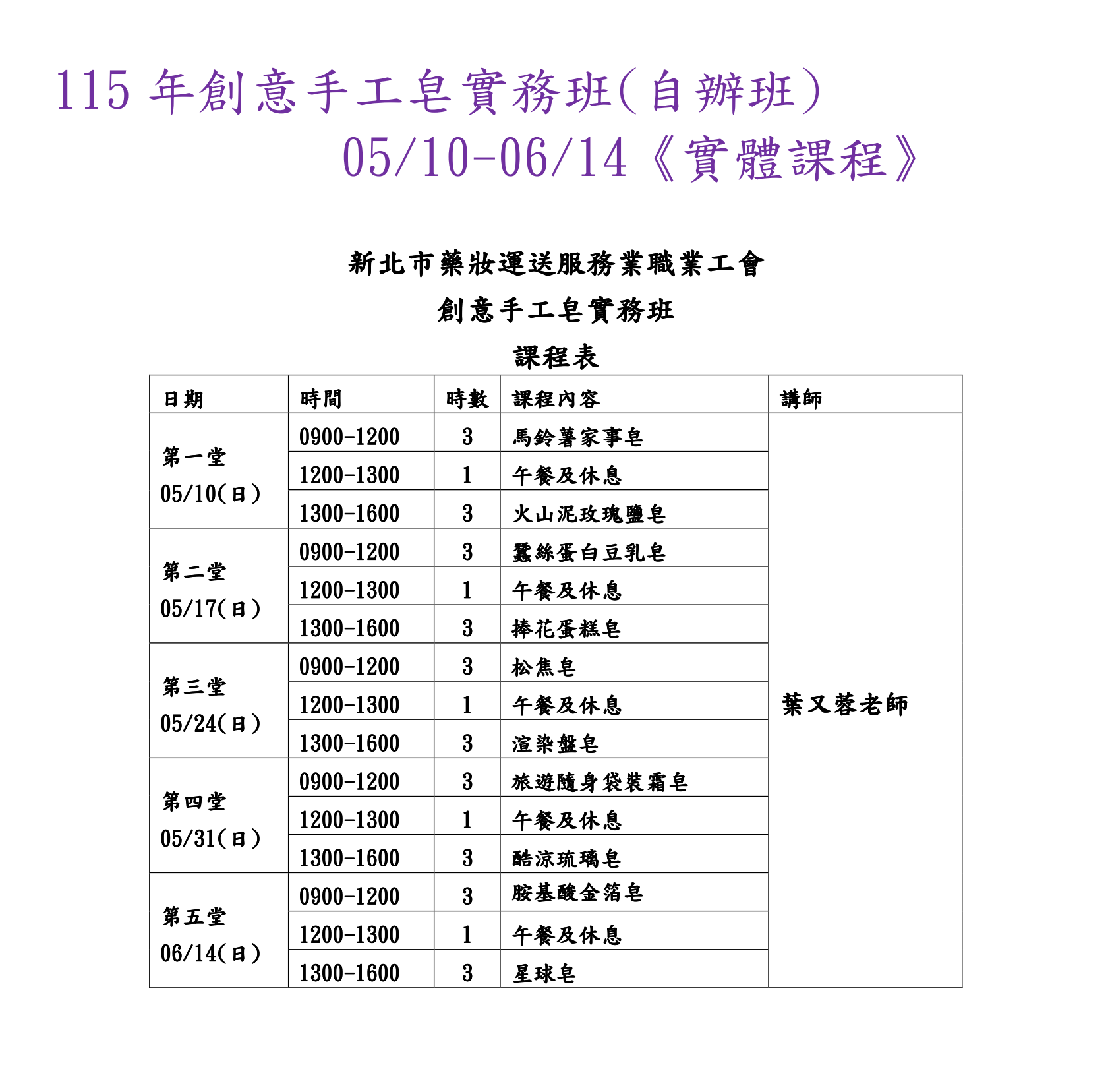 115年創意手工皂實務班(自辦班)05/10-06/14《實體課程》