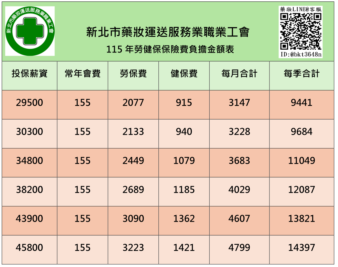 2.勞保費2077元(投保薪資29500)+健保費915元(眷屬同)(投保薪資29500)+會費155元=3147元
